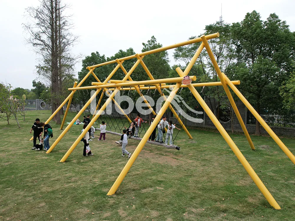 Today's outdoor play equipment is increasingly integrating with the natural environment. In some newly built community parks, natural wood climbing frames have replaced the old plastic slides.