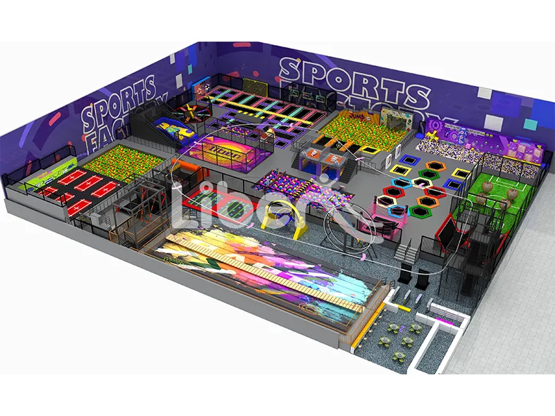 Liben Trampoline Park with foam pit and safety fence support to be an individual area to put anywhere you want, such as trampoline park, family entertainment center, shopping mall, indoor gym, sports park, school.