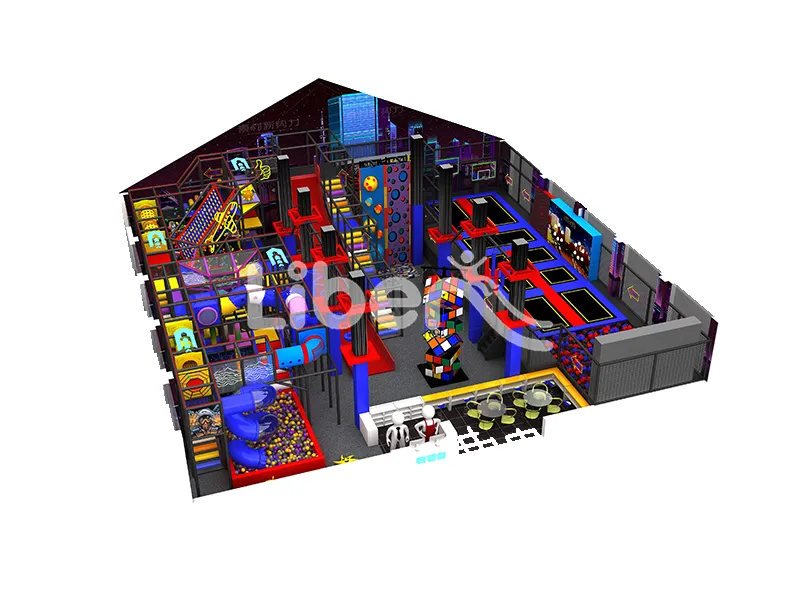 Liben Trampoline Park with foam pit and safety fence support to be an individual area to put anywhere you want, such as trampoline park, family entertainment center, shopping mall, indoor gym, sports park, school.