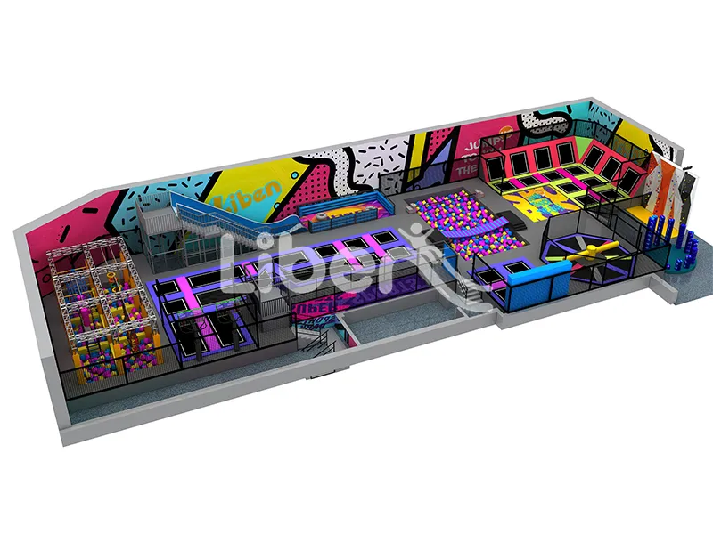 Liben Trampoline Park with foam pit and safety fence support to be an individual area to put anywhere you want, such as trampoline park, family entertainment center, shopping mall, indoor gym, sports park, school.